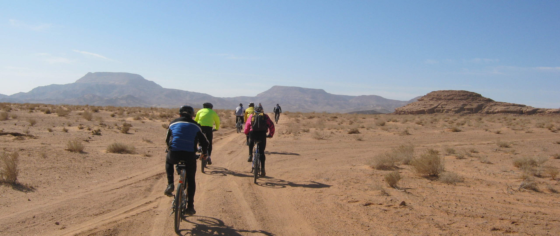 You begin with a short transfer by vehicle, getting on your bikes at the village of Delagha and heading south on an unsurfaced desert track. After a couple of hours you reach an old caravanserai at a place called Humaimah, where you stop for lunch. After a good rest you continue south until we reach Jordan's main north-south road, the Desert Highway. Here we put the bikes on the van and drive south to Wadi Rum, where you meet our Bedouin hosts and transfer to their 4x4 jeeps to get to your camp in heart of the Wadi Rum's protected area.